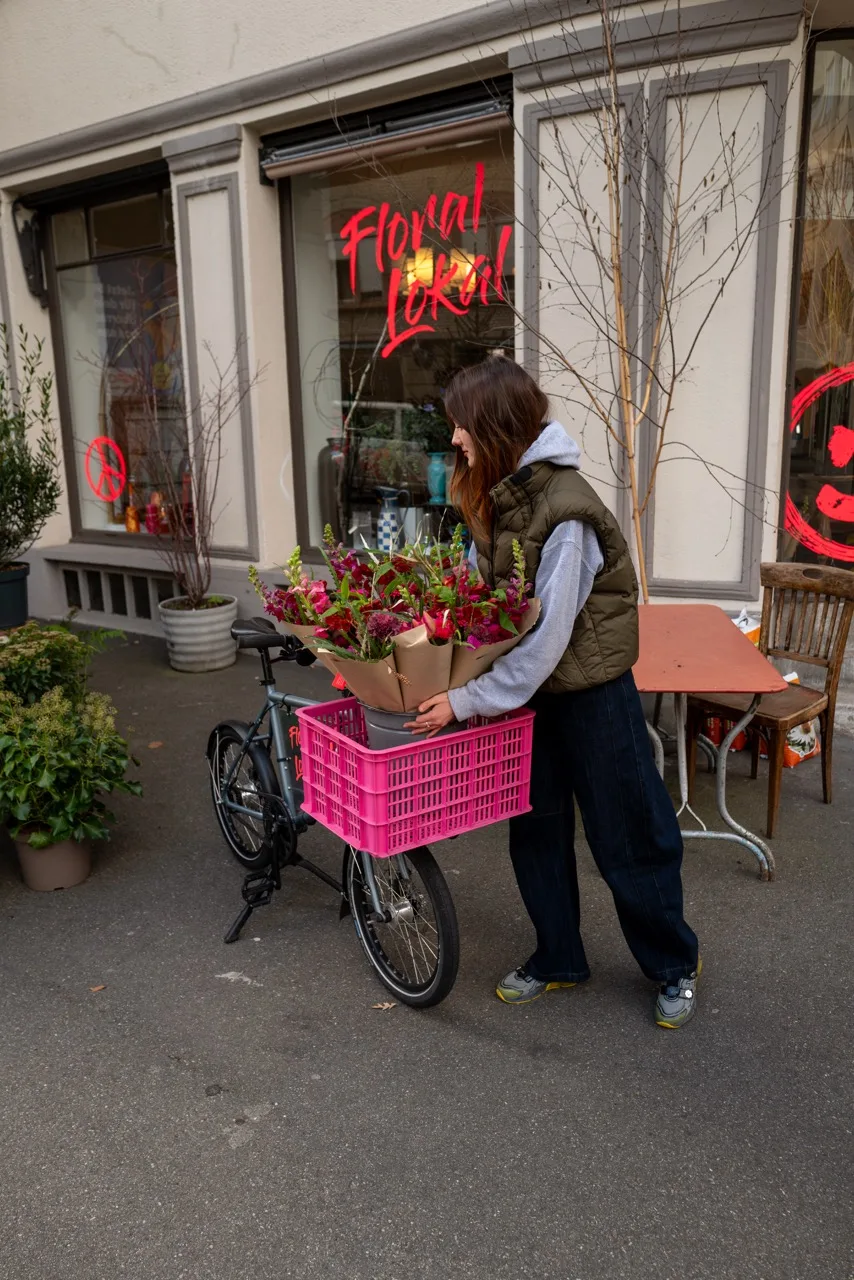 Für florale Lieferungen im Quartier zwischen den drei Standorten, als Ausstellungsfläche und für allerlei Besorgungen benutzen Seraina und ihre Mitarbeiter:innen das FLINC.
